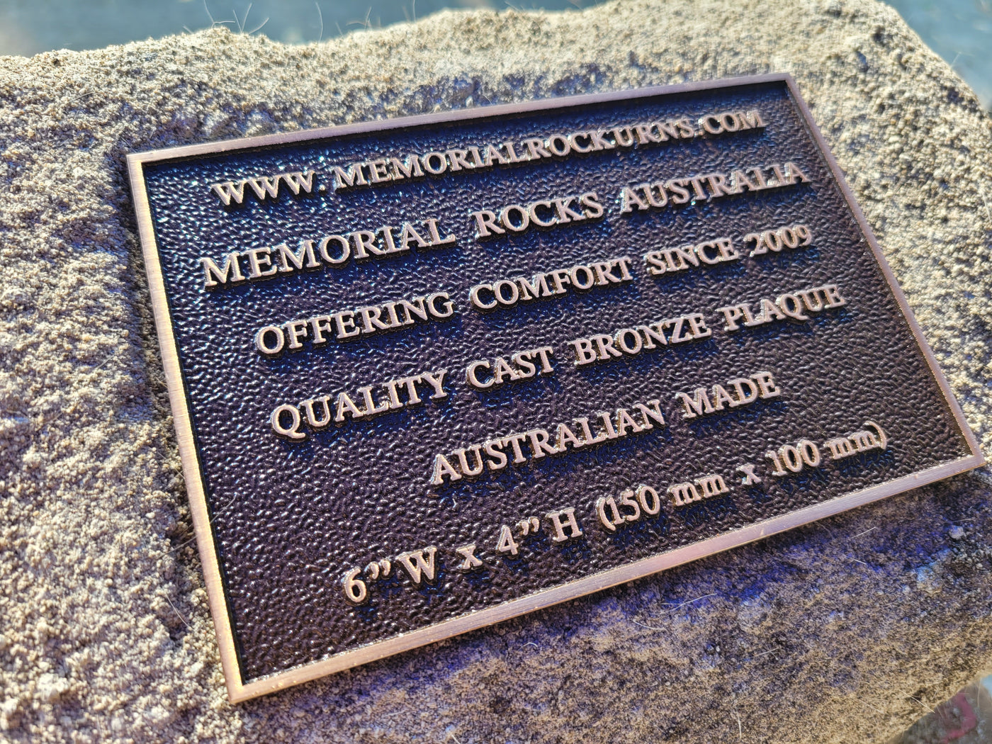 Memorial Rock Urns are a loving practical alternative for the safe keeping of a loved one's ashes. This Memorial rock has an incorporated flat indented recess space for a 150mm x 100mm x4.5mm industry standard bronze plaque. PLAQUE SOLD SEPARATELY Proudly an Australian made, original product. Operating since 2009. Regular size. Lightweight (a...